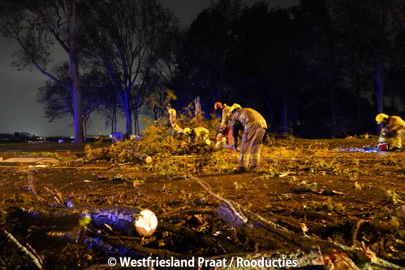 WEST-FRIESLAND – Benjamin kwam wat eerder aan land dan verwacht wat er voor zorgde dat vooral veel verkeersdeelnemers er last van hadden, er ontstonden lange files op de snelwegen. Maar ook zorgde de storm dat er veel takken van bomen werden gerukt en zelfs complete bomen werden ontworteld, over de hoeveelheid dakpannen die van daken werden geblazen maar niet te praten. In Westwoud viel een boom op een auto en in Hoorn reed een scooterrijder tegen een omgevallen boom, de scooterrijder moest met verwondingen naar het ziekenhuis worden gebracht.