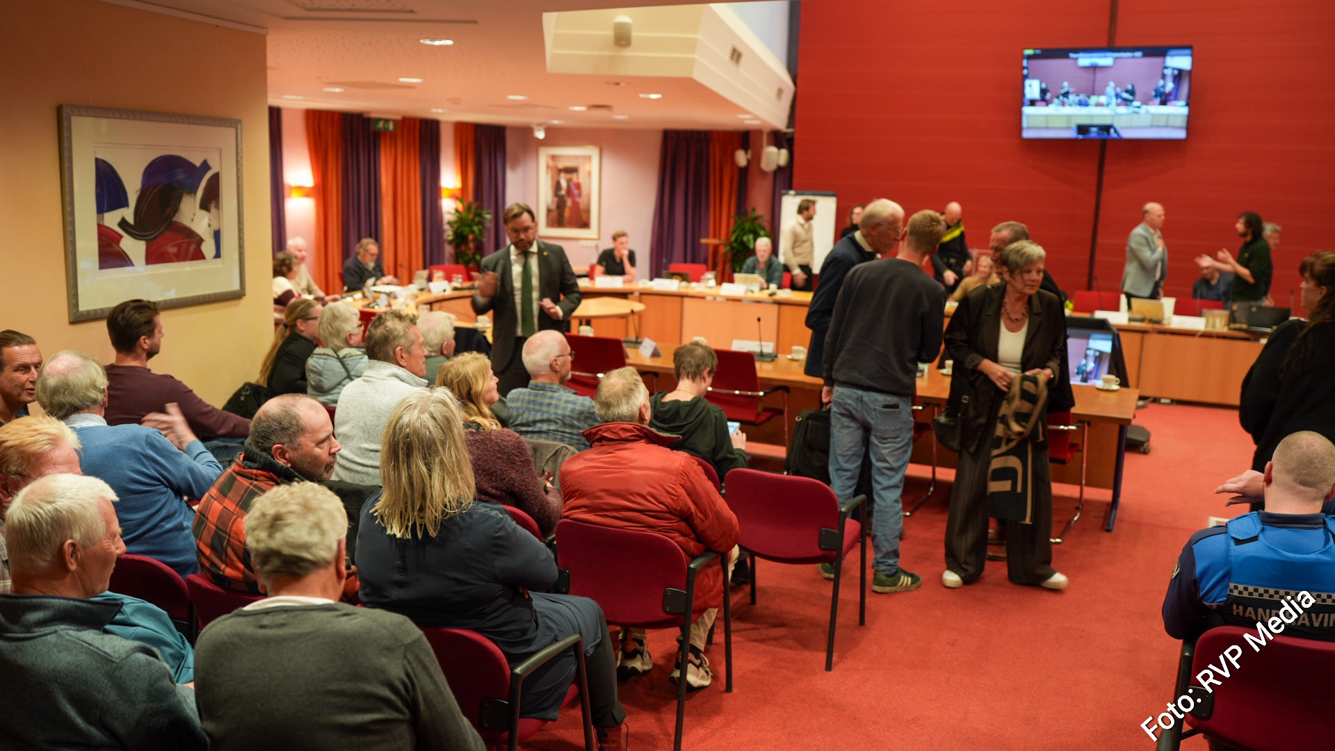 Om te zorgen dat het niet uit de hand zou gaan lopen heeft de burgemeester diverse maatregelen genomen, zo is er politie en handhaving aanwezig. Maar tot verbazing van velen is de opkomst zwaar tegenvallend. De extra stoelen in de hal blijken niet nodig te zijn, enkel de publieksruimte is bezet met voor- en tegenstanders en met nieuwsgierig naar het veiligheidsplan.